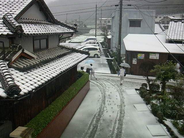 お母さんは地元の高橋の母校の高校の体育館で観戦。服は着物で。