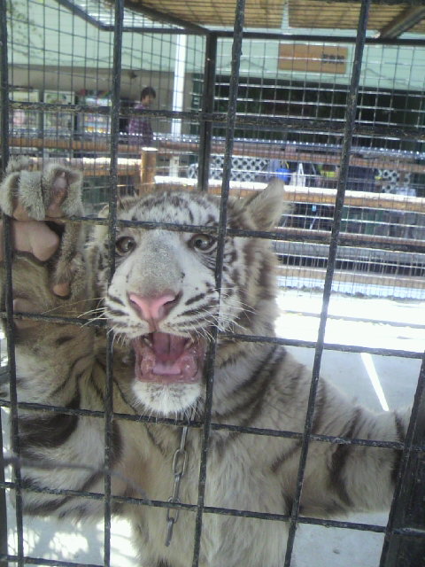 フェンス!フェンスだけで何もへだてるものナシでホワイトタイガーっ!
